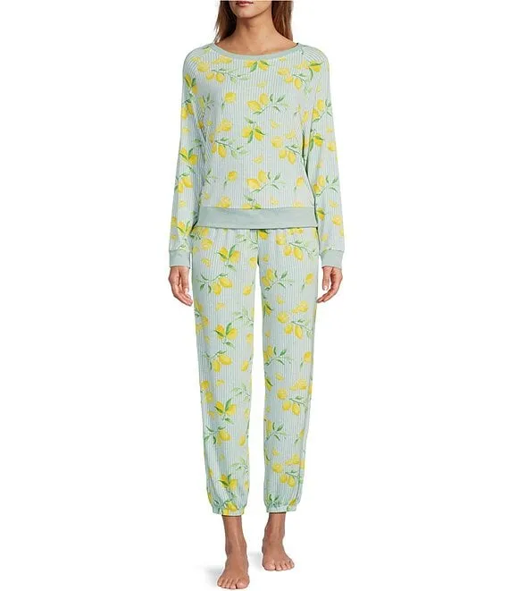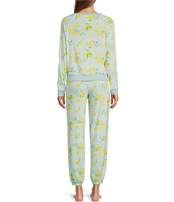 Star Seeker Lounge Knit Stripe Tealeaf Lemon Print Top & Jogger Pajama Set