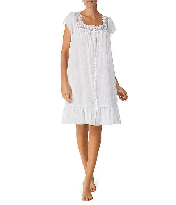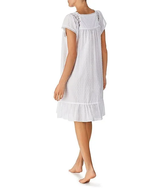 Rose Lace Square Neck Cap Sleeve Swiss Dot Short Nightgown