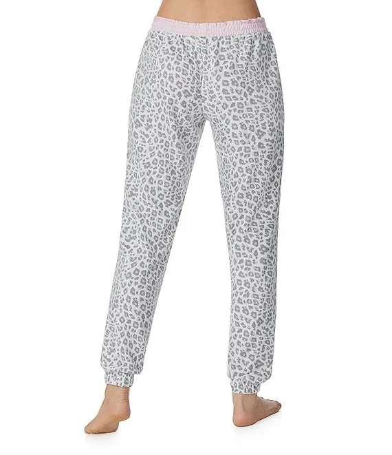 Marsh Animal Print Elastic Waist Knit Pocketed Sleep Jogger