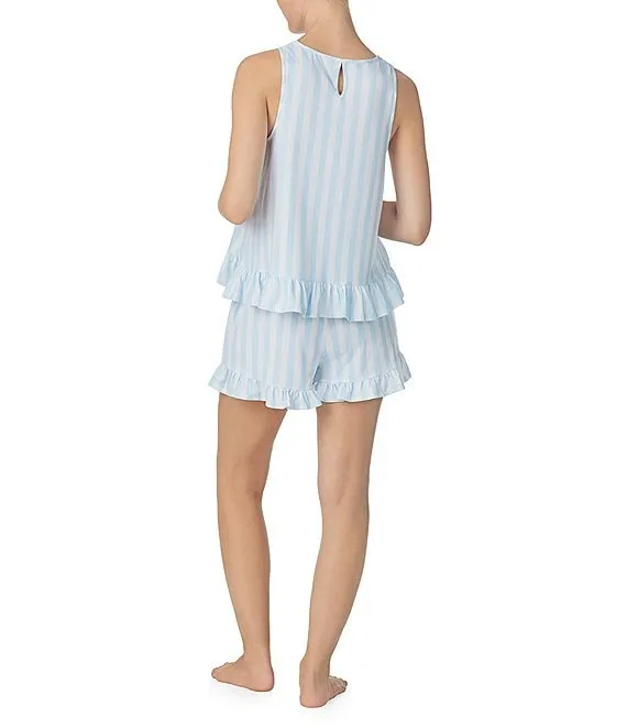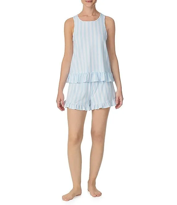 Striped Jersey Knit Tank & Shorty Ruffled Pajama Set