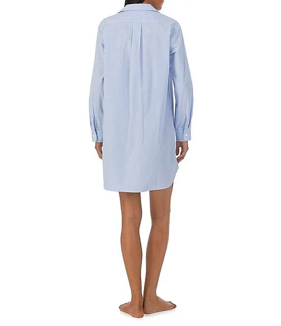 Lauren Ralph Lauren Long Sleeve Roll Tab Woven Button-Front Striped Nightshirt