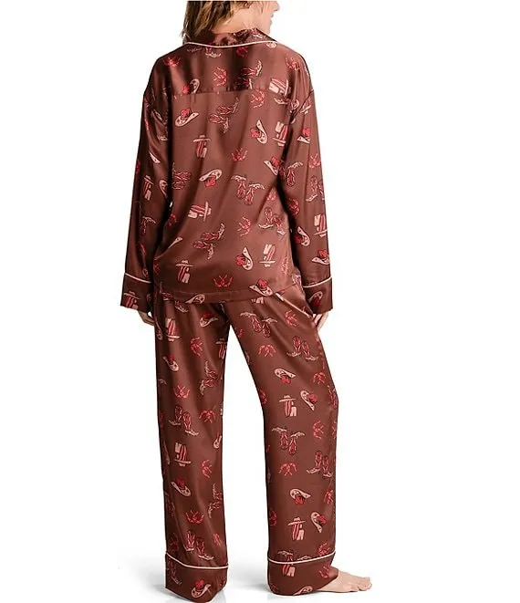 Satin Long Sleeve Western Print Pajama Set