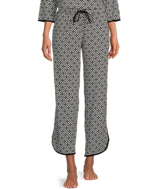 Tile Print Drawstring Tie Coordinating Knit Sleep Pant