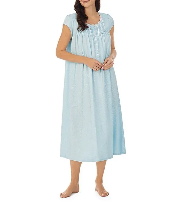 Floral Print Soft Cotton Knit Round Neck Cap Sleeve Nightgown