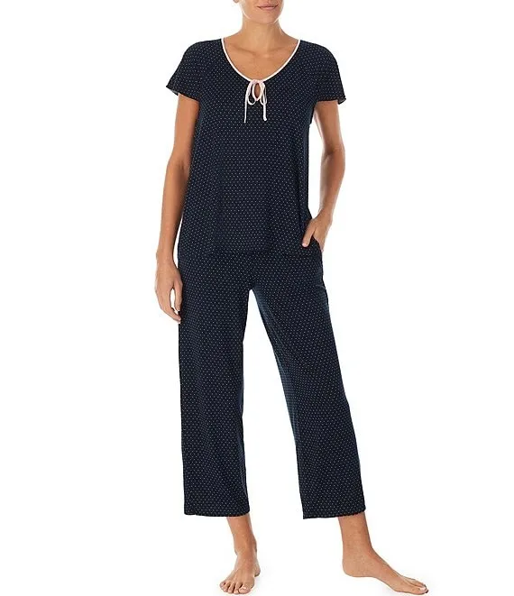 kate spade Short Sleeve Pin Dot Print Jersey Knit Cropped Pajama Set