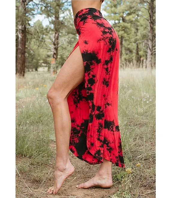 Bhakti Tie Dye Print Knit Jersey Wide Leg Asymmetrical Hem Coordinating Pants