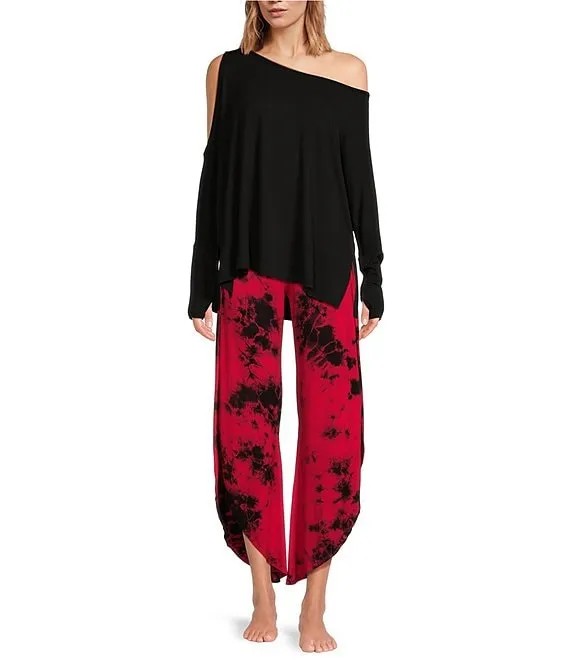 • Bhakti Tie Dye Print Knit Jersey Wide Leg Asymmetrical Hem Coordinating Pants