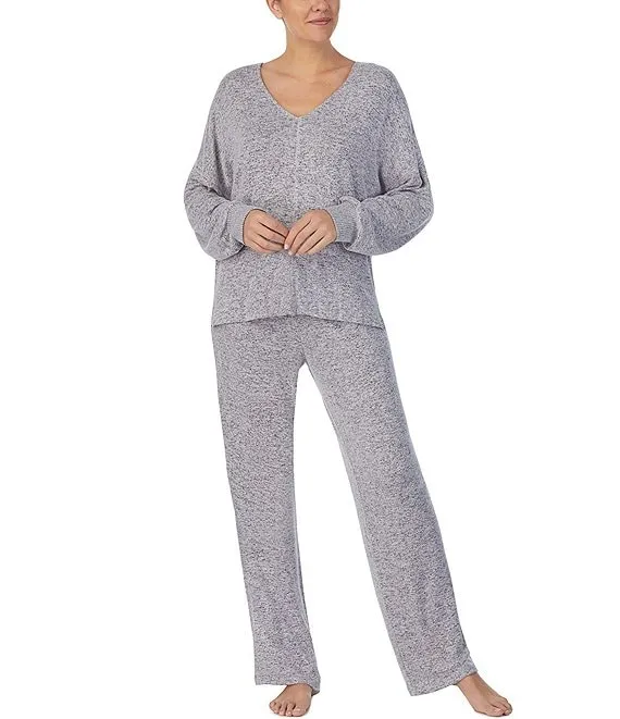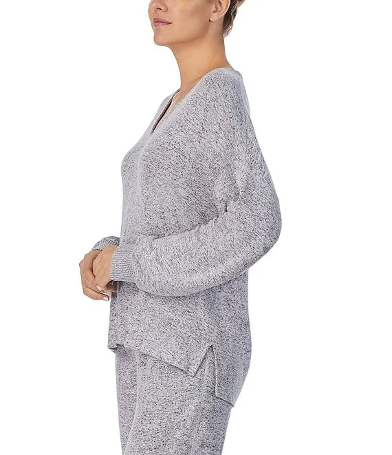 Brushed Marl Long Sleeve V-Neck Coordinating Sleep Top