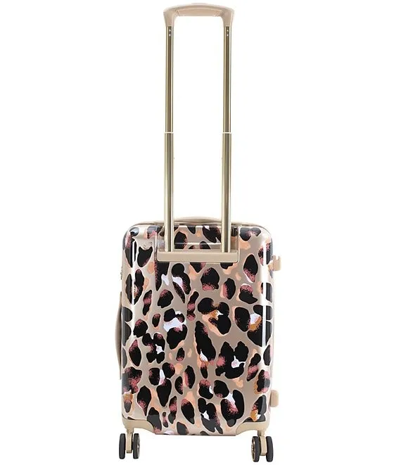 - a high gloss finish with leopard print and gold hardware