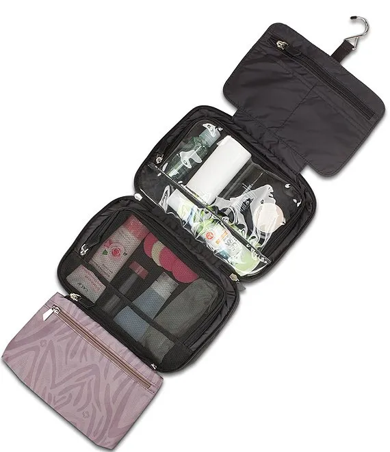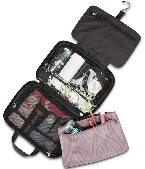 Get hung up on our Hanging Travel Case Designed to carry by the handles, store flat, or hang by the included hook, this style has all your needs covered. 4 separate compartments provide the most storage in a slim silhouette. Look closely and you'll notice the 4th compartment zips off to use with this case, alone, or in another bag.