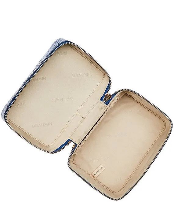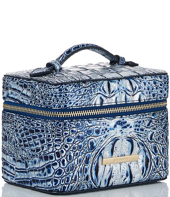 From the Melbourne Collection by BRAHMIN, the Coastal Blue Small Charmaine Travel Leather Makeup Bag features: