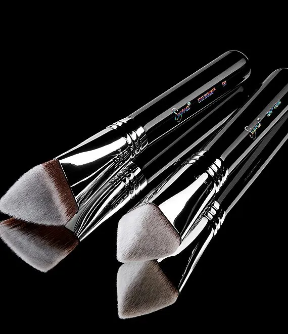 - Double wedge flat surface: Allows application of liquid, cream or powder products on flat or slightly curved areas of the face in two simple steps. First, apply product using one side of the wedge, then use the second (clean) side of the brush to smooth the surface and eliminate any streaks.