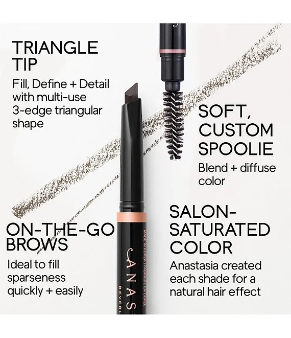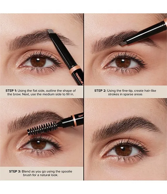 An all-in-one triangular-tipped pencil for defining, filling and detailing brows.