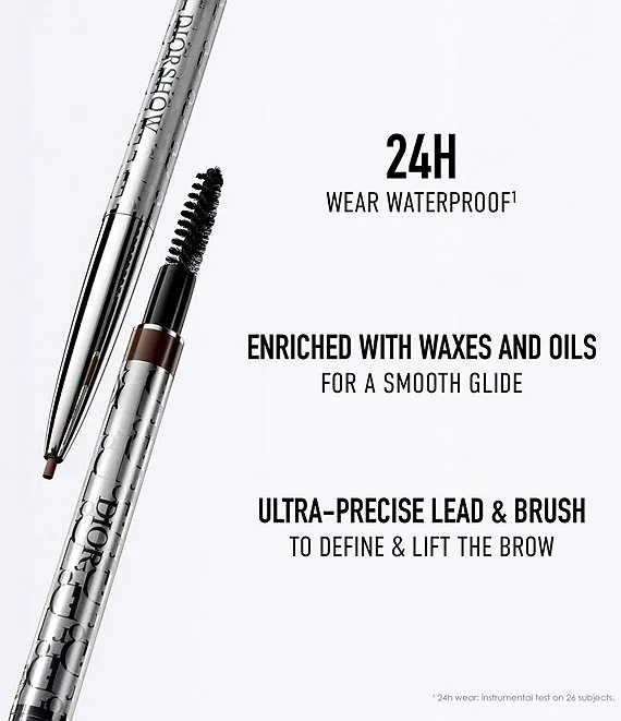 This Dior makeup essential features a brow brush and an ultra-fine retractable tip for effortless precision and blending. The waterproof formula gives the brows a naturally full and well-defined appearance for flawless eye makeup looks that last. A range of shades designed to match a variety of brow colors.