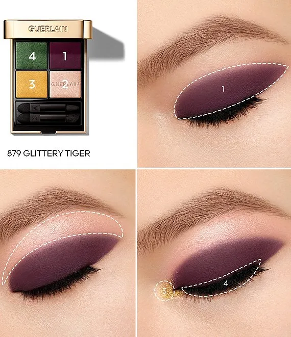 For the festive season, Violette, Guerlain's Make-Up Creative Director, has created a festive harmony in limited edition: Glittery Tiger. Inspired by the animal kingdom, she has imagined a new palette where sophisticated eyeshadow meets a fantastic animal print case. Four vibrant colors to combine for the most chic and modern look.