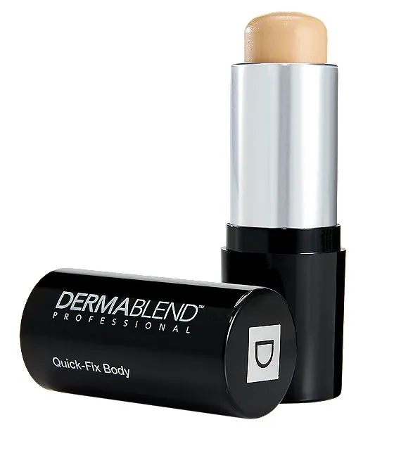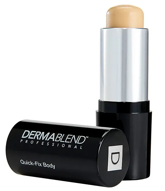 #1 Dermatologist Recommended Coverage Brand Dermablend brings you Quick Fix Body Foundation Stick - a full coverage body makeup foundation stick that provides maximum coverage for up to 16 hours of smudge and transfer-resistant wear when set with Dermablend Setting Powder. Formulated to suit all skin types, including sensitive skin, it provides all-day hydration for coverage that's never cakey. Cruelty-free. Featuring a high concentration of high-performance pigments, this creamy texture glides on smoothly for a flawless look whether for spot coverage or a concentrated body surface area. Provides maximum full coverage for skin concerns such as scars, birthmarks, bruising, burns, and tattoo cover up. Hack: Quick Fix Body Foundation Stick can also be used as a body contour stick! Cruelty-free.