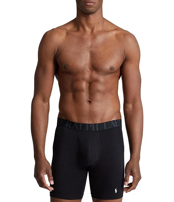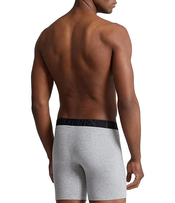 - three pairs of boxer briefs with signature Polo Ralph Lauren elastic waistband