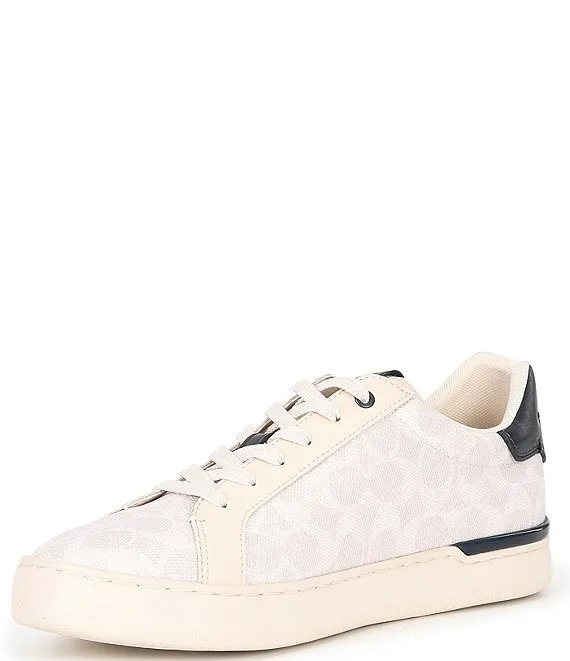 From COACH, the Men's CitySole Lowline Signature Canvas and Leather Retro Sneakers feature: