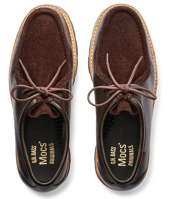 From G.H. Bass, the Men's Wallace Mixed Media Lace-Up Lug Sole Mocs feature: