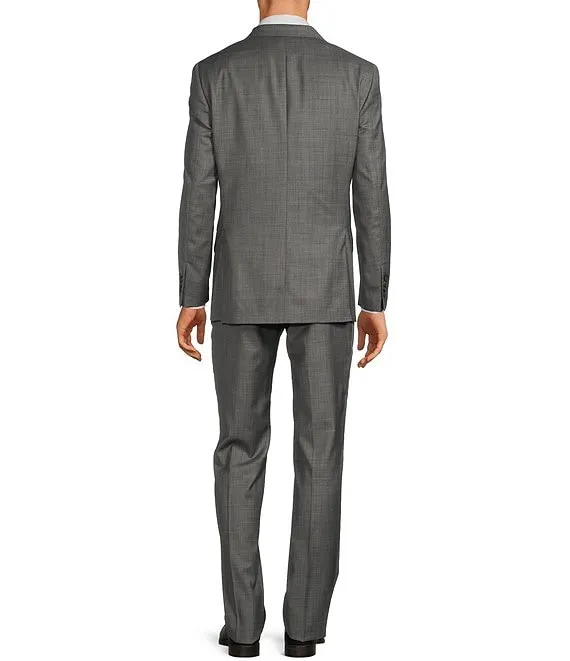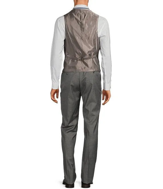 New York Modern Fit Flat Front Sharkskin Pattern 3-Piece Vested Suit