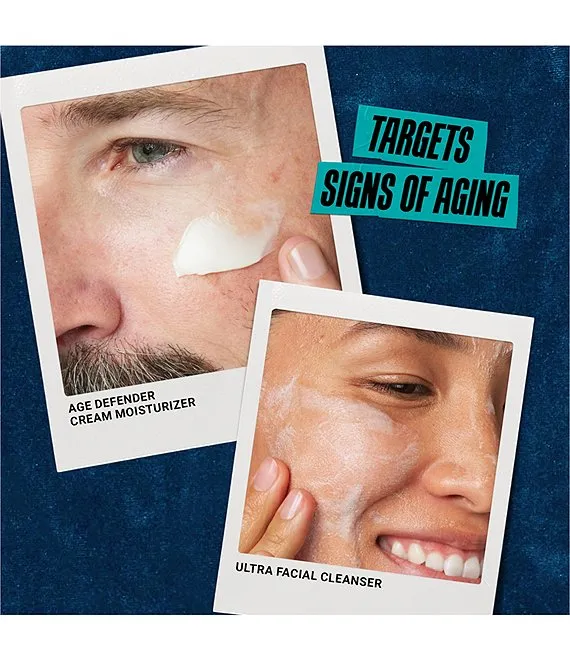- Age Defender Cream Moisturizer is an anti-aging treatment for men's skin that targets fine lines and wrinkles while visibly firming skin