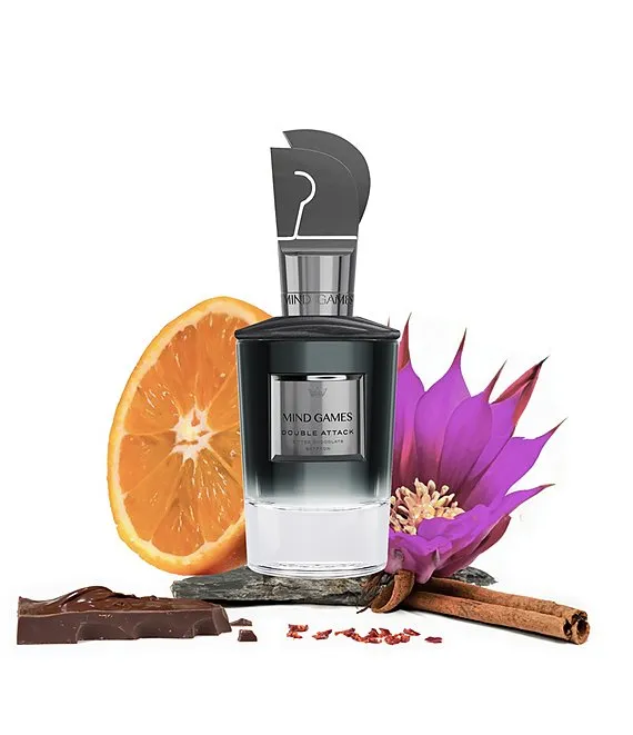 - Double Attack: utilizes the multi-faceted notes of chocolate to deliver a medley of bittersweet, woody notes that drive the fragrance enveloped in an opening of spices and florals that give way to the underlying base notes of bourbon, and vanilla