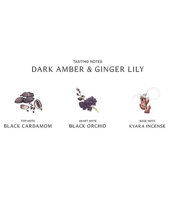 The combination of Dark Amber & Ginger Lily with Blackberry & Bay creates a sensual fragrance with distinctive woody depth, brightened with tart berry juices.