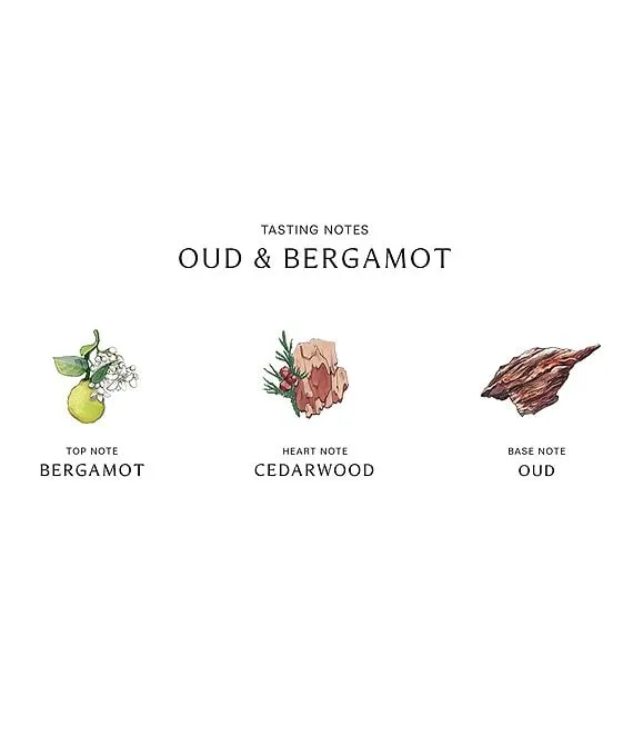 The combination of Oud & Bergamot with Grapefruit creates a hypnotic woody fragrance with flashes of citrus clarity radiating from its smoky depths.