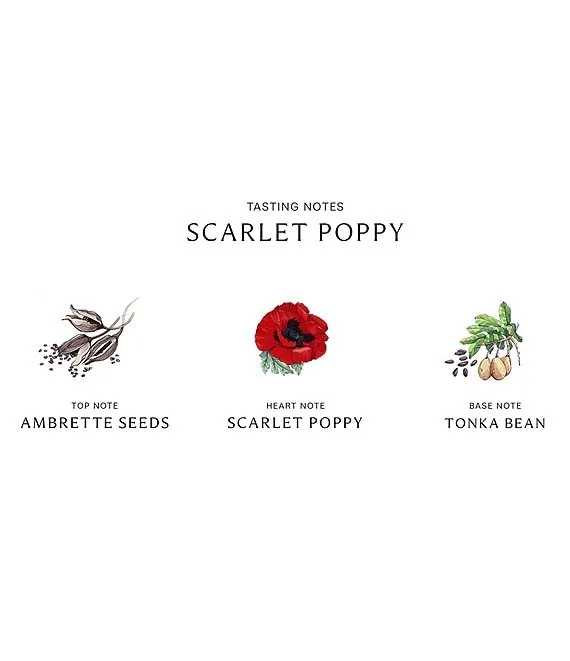 Myrrh adds warmth to the decadence of scarlet poppy, wrapped in the sweet richness of tonka bean.