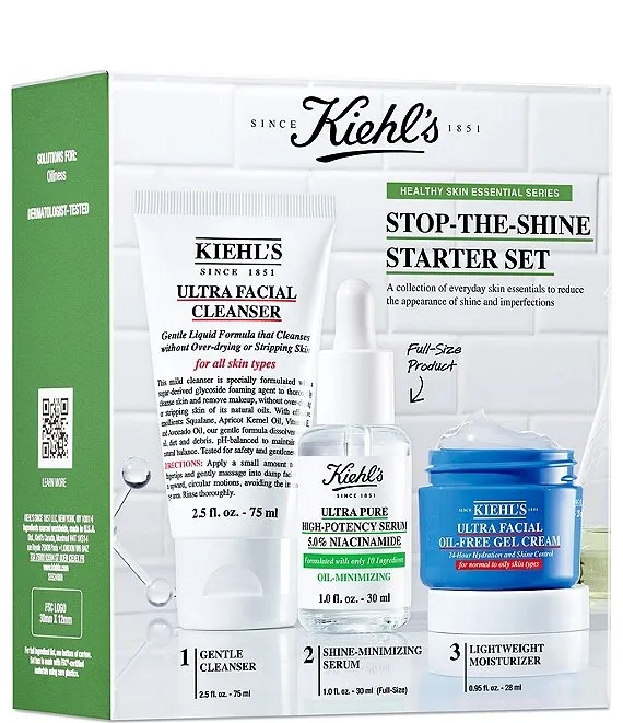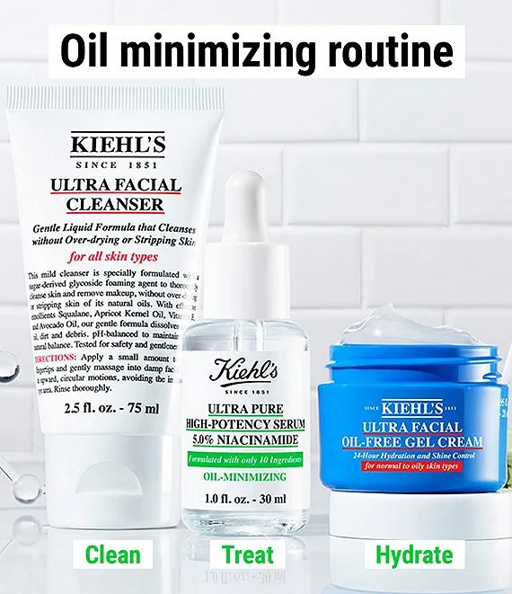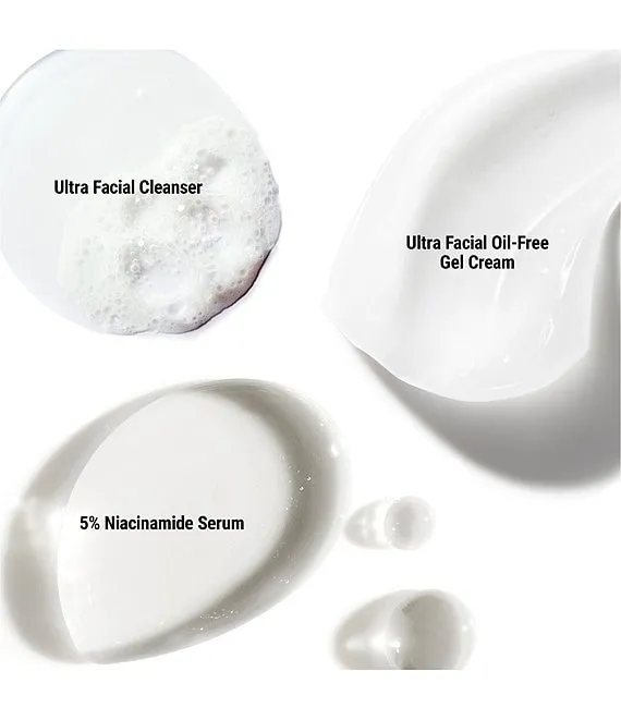 A set of skincare essentials for oily skin with just three steps to help visibly reduce shine and the look of imperfections. This set features a Facial Cleanser, Niacinamide Serum, & Oil-Free Gel Cream for shine control. A $73 Value!