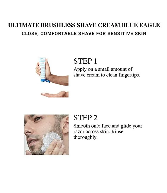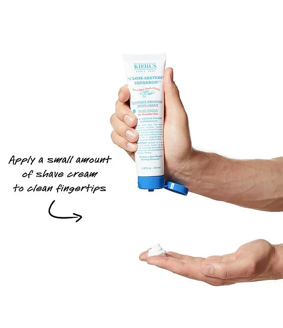 - Smooth on a small amount of Kiehl's men's shave cream for sensitive skin no water needed