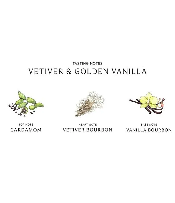 Base Note: Vanilla Bourbon - Comforting vanilla adds an enveloping and sensual warmth to the vetiver bourbon heart.