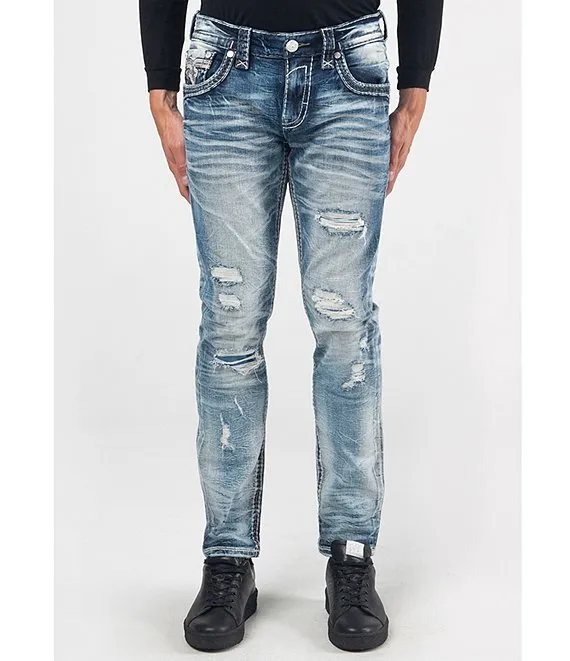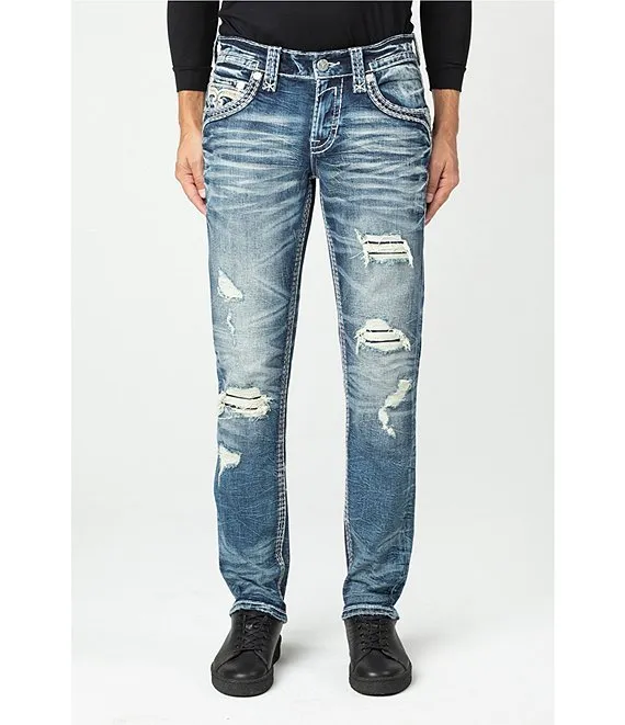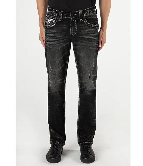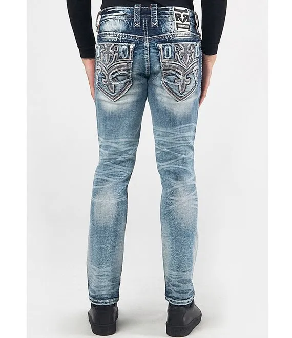 Ezekiel Straight-Leg Fleur-De-Lis Pocket Denim Jeans