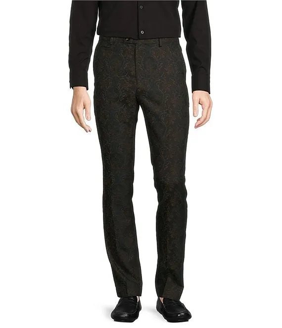 Tigers of Tokyo Collection Evan Extra Slim Fit Damask Jacquard Suit Separates Flat Front Dress Pants