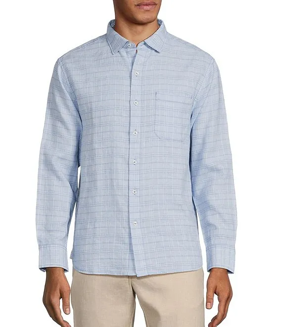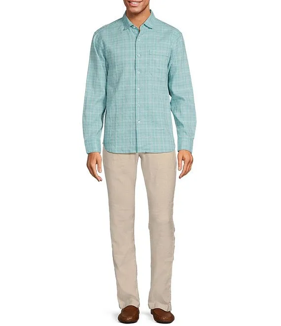 Barbados Breeze Playa Plaid Long Sleeve Linen Blend Shirt
