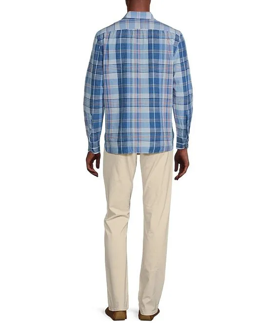 Blue Label Color Washed Plaid Poplin Long Sleeve Woven Shirt