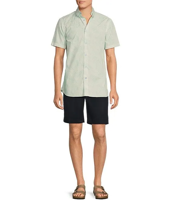 Blue Label Palm Leaf Poplin Print Short Sleeve Woven Shirt
