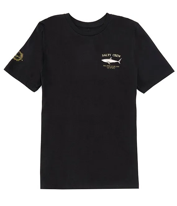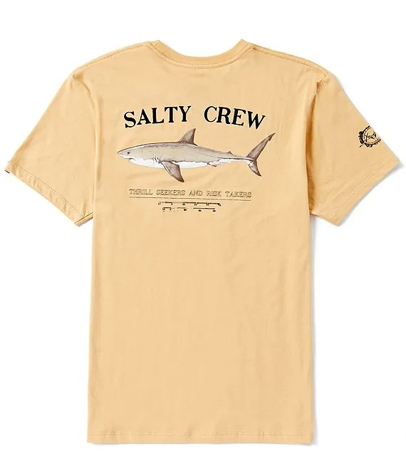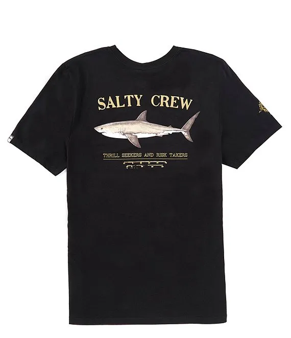 • "Salty Crew" logo, shark graphic and "Thrill Seekers And Risk Takers" on the back