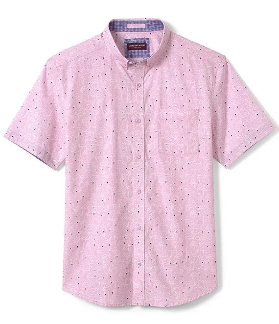 Flamingo Print Short Sleeve Woven Shirt