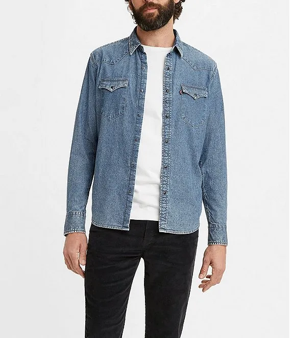 Stretch Denim Long Sleeve Woven Shirt