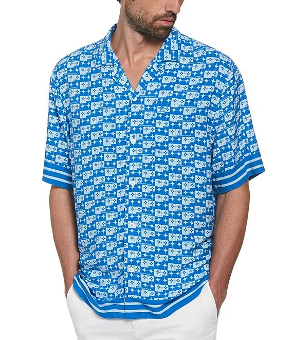 Geo Print Short Sleeve Woven Camp Shirt