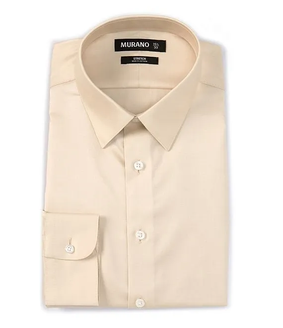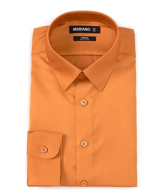 Slim Fit Non Iron Point Collar Solid Sateen Dress Shirt