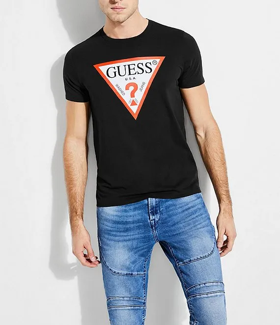 Guess Short-Sleeve Slim Fit Classic Triangle Logo Graphic T-Shirt