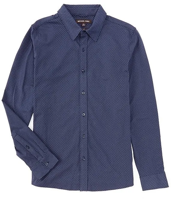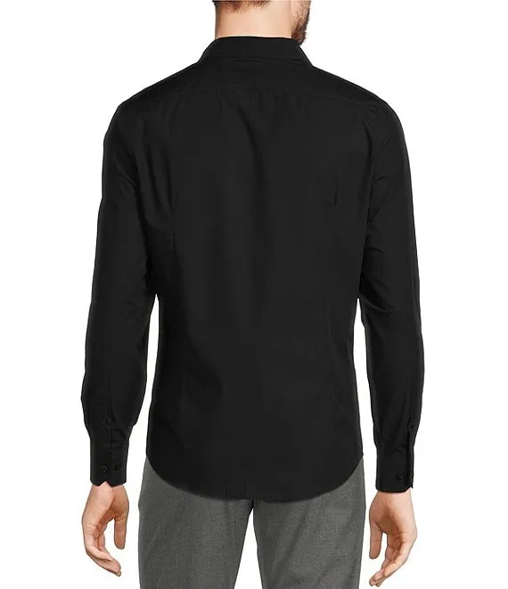 Slim Fit Stretch Pin Dot Long Sleeve Woven Shirt