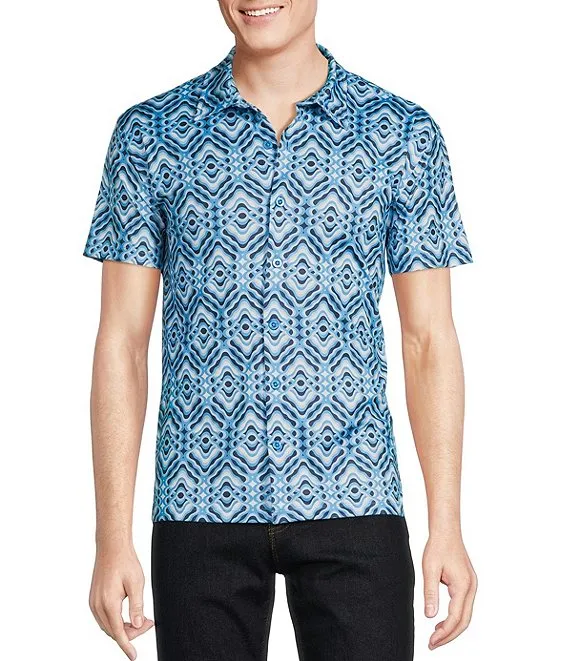 Geo Block Print Short Sleeve Woven Shirt