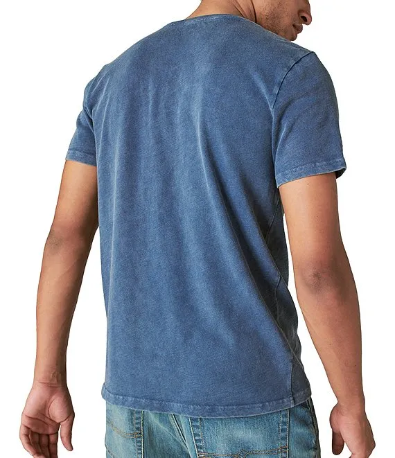 Short Sleeve Button Notch Neck Venice Burnout T-Shirt