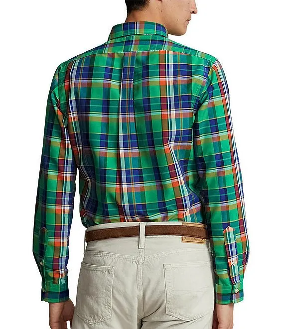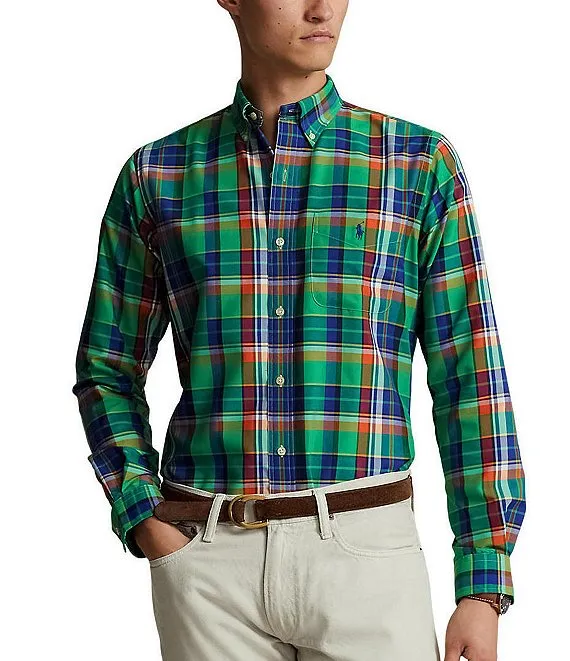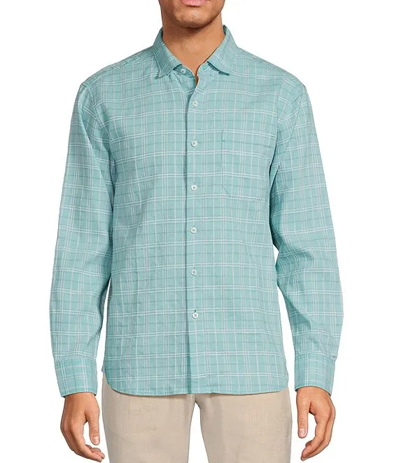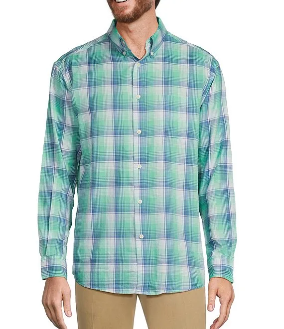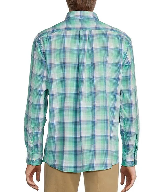 Long Sleeve Large Plaid Washed Twill Sport Shirt
