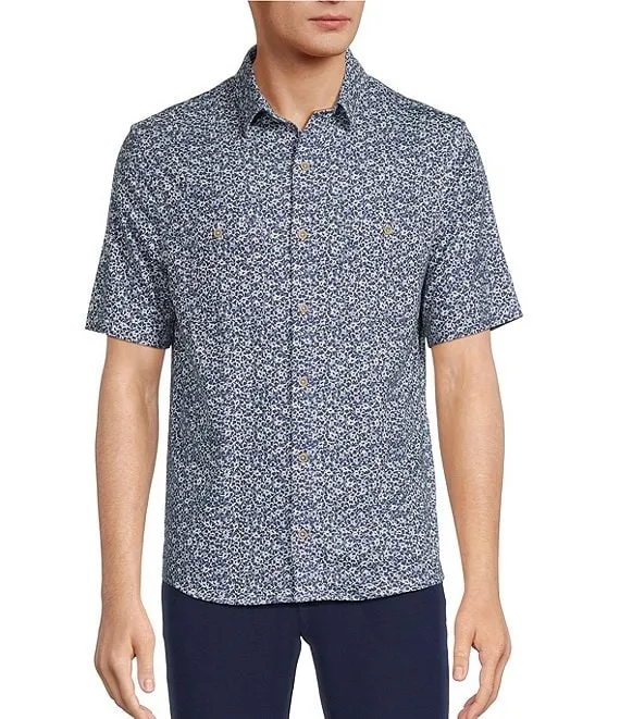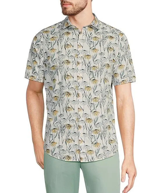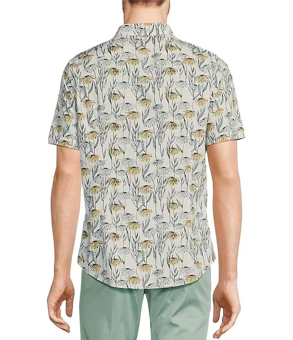 Verdant Vibes Collection Slim Fit Daisy Print Short Sleeve Woven Shirt