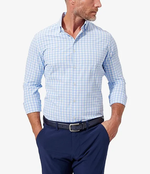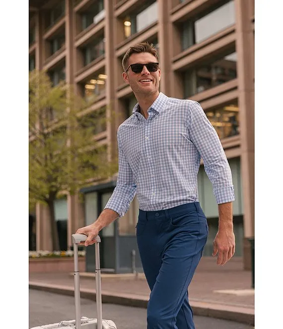 Trim Fit Leeward Madison Filbert Plaid Performance Stretch Long Sleeve Woven Shirt