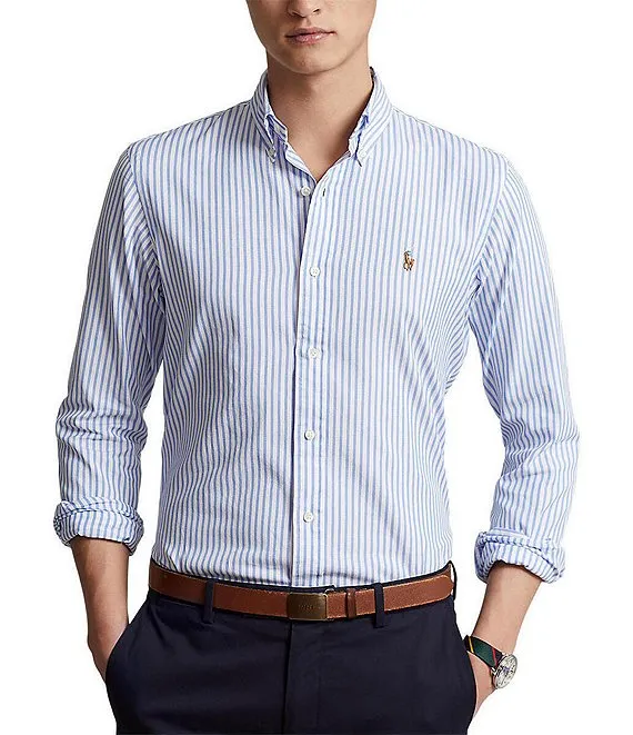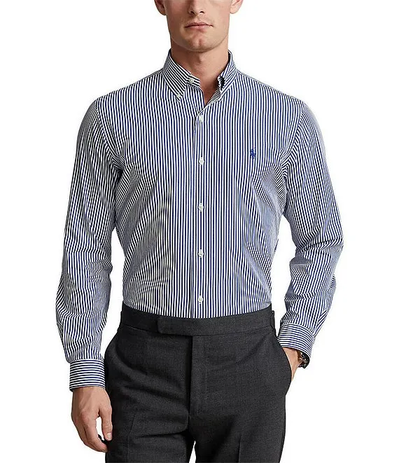 Lauren Ralph Lauren Slim Fit Striped Stretch Poplin Long Sleeve Woven Shirt